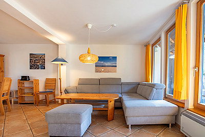 Ferienwohnung für 6 Personen in Strandnähe mit 77 m², Wohnzimmer mit Küchenzeile, 2 Schlafzimmer, Badezimmer mit Dusche und WC, Balkon, Terrasse, 200 m zum Strand an der Ostsee