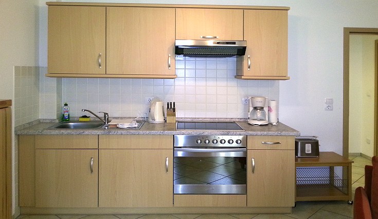 Cerankochfeld, Backofen, Kühlschrank, Microwelle, Kaffeemaschine, Wasserkocher, Toaster